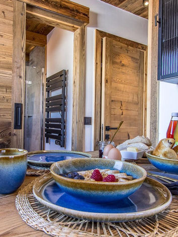Issu du sanskrit, Tamas représente l’énergie du repos et de la régénération. Un espace pour ralentir, se recentrer et se ressourcer face aux montagnes. La Tamas Room est donc une invitation au calme et à la contemplation. Depuis ses fenêtres, le regard se pose sur la chaîne des Aravis, offrant un spectacle changeant au fil des saisons, entre lumière douce du matin et couchers de soleil apaisants.